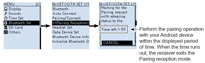 上述設(shè)置后在MENU/Bluletoothset/Pairng Reception/進(jìn)入配對(duì)等待屏幕。