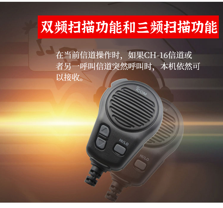 雙頻掃描功能和三頻掃描功能  在當(dāng)前信道操作時(shí),如果ch-16信道或者另一呼叫信道突然呼叫時(shí)本機(jī)依然可以接收。