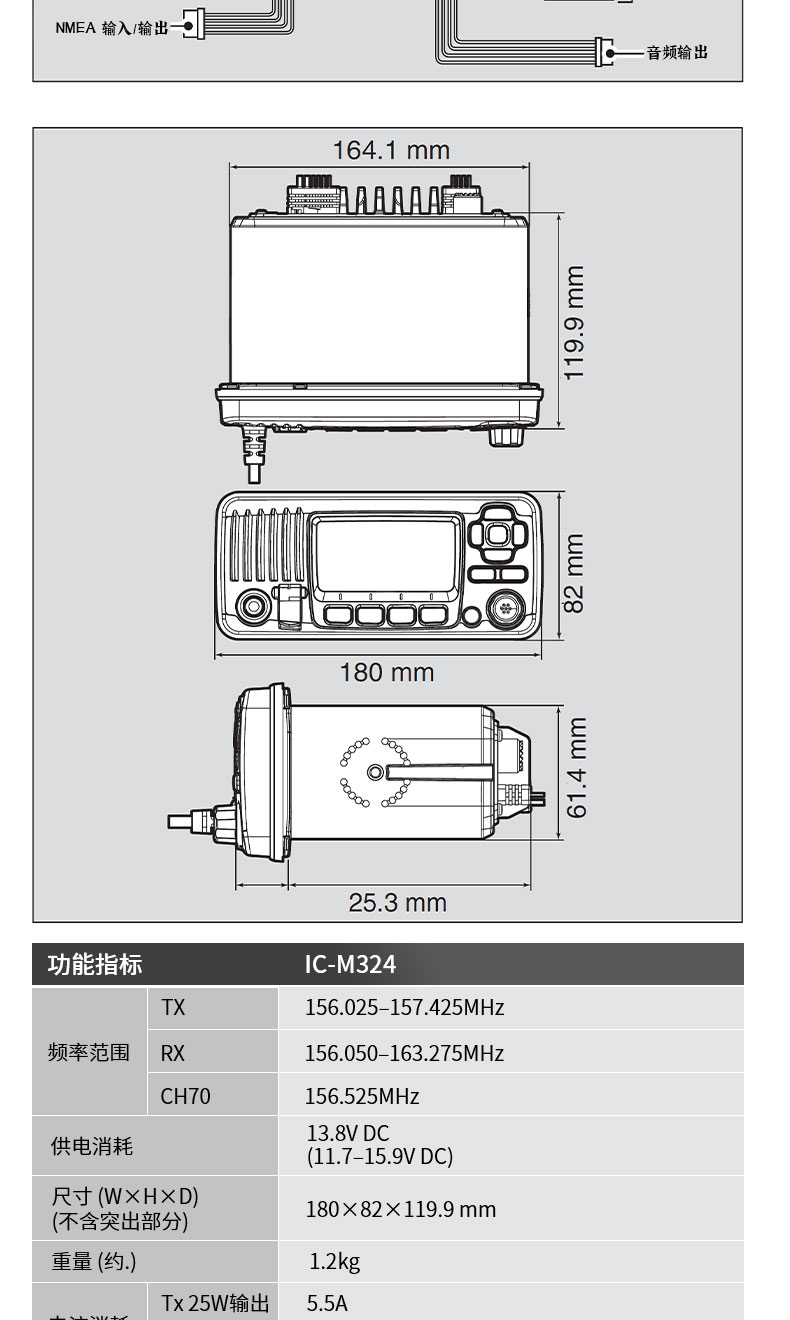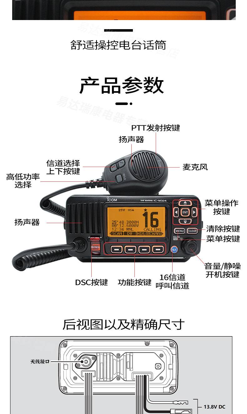 ICOM艾可慕IC-M324海事用車(chē)載臺(tái)