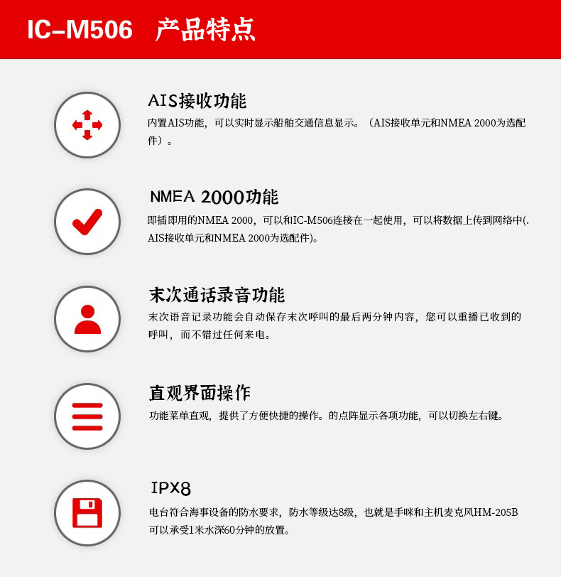 您當(dāng)前的位置: 首頁(yè) > 產(chǎn)品中心 > ICOM艾可慕IC-M506海事車(chē)載電臺(tái)