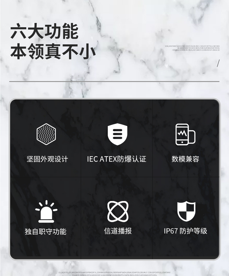可在氫氣環(huán)境中使用,數(shù)模兼容,IP67防護等級,可在水深1米放置30分鐘。NXDN制式。