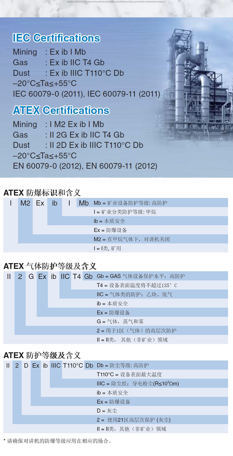 • 氫氣數(shù)字防爆對講機,IEC認證,ATEX認證,IP67防護等級,IDAS數(shù)字系統(tǒng),兼容模擬
