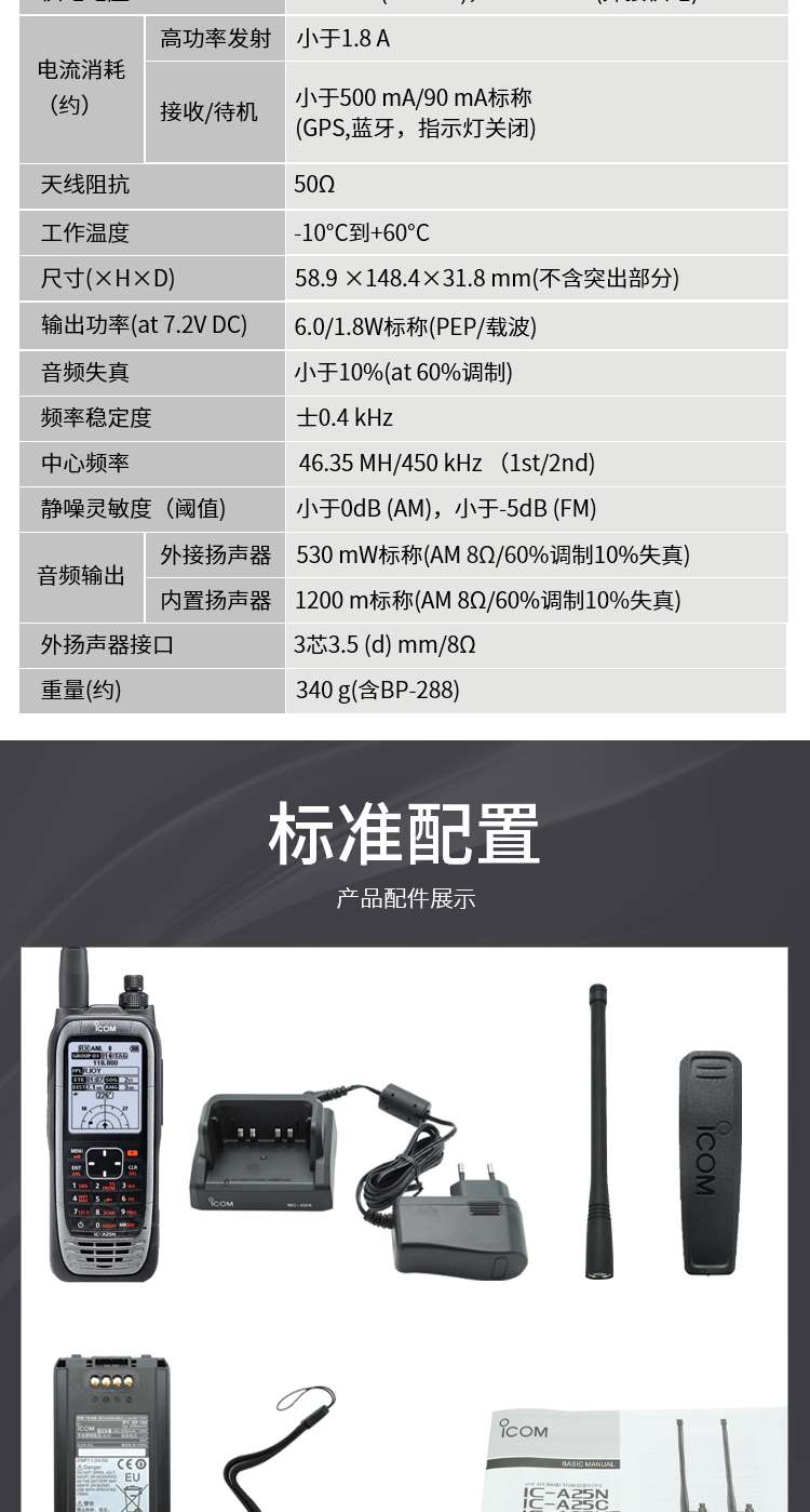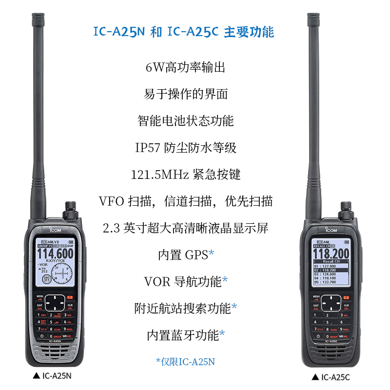 ICOM 艾可慕IC-A25航空對講機(jī)內(nèi)置GPS