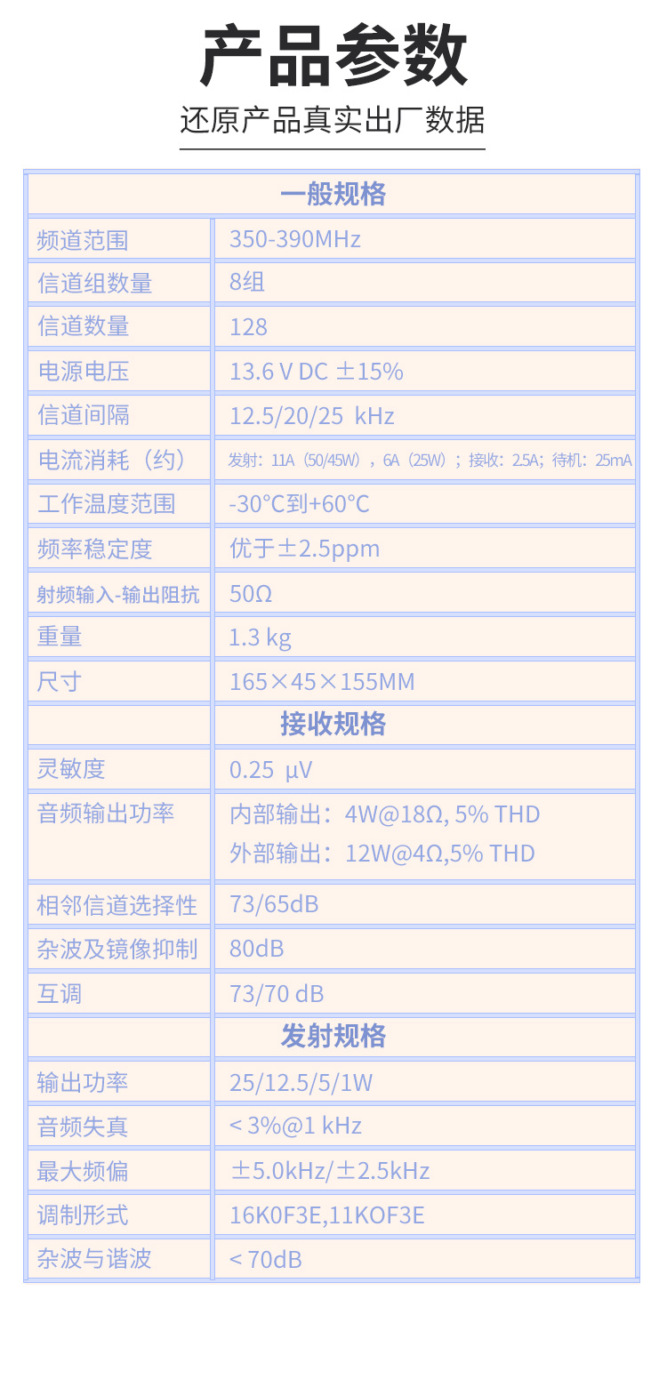• 128個(gè)信道 25W輸出350-390MHz 選呼功能