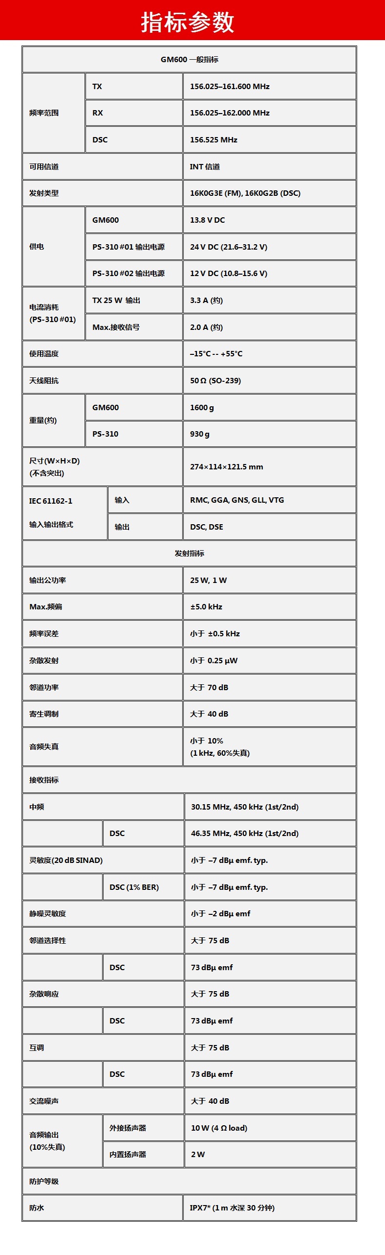 • 救援電臺(tái)/IPX7防水/內(nèi)置DSC,可以救援使用/符合MED
