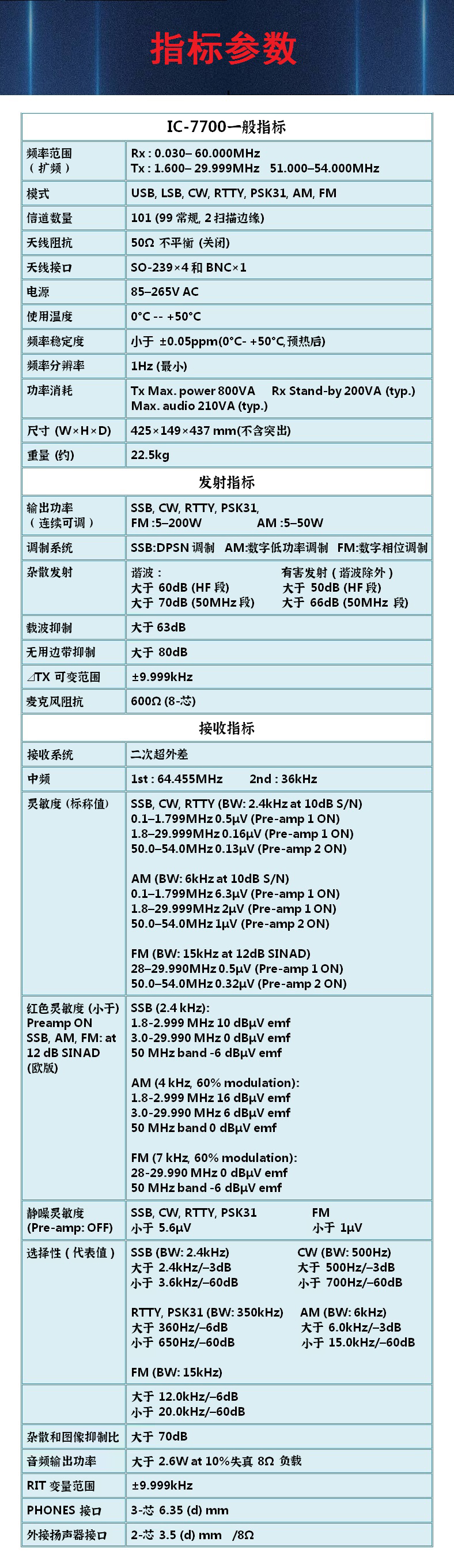 ICOM 艾可慕短波電臺IC-7700SSB電臺