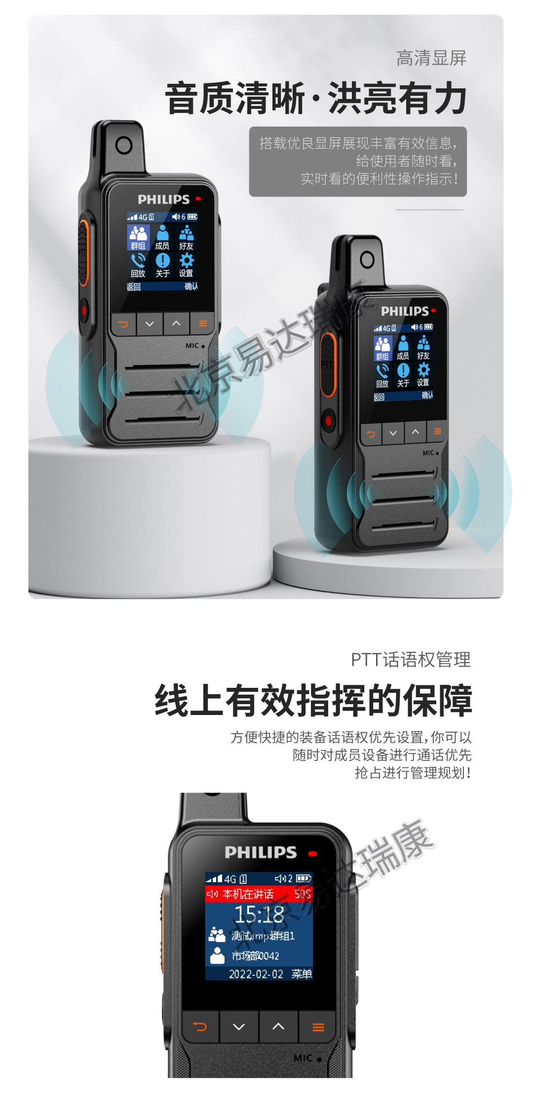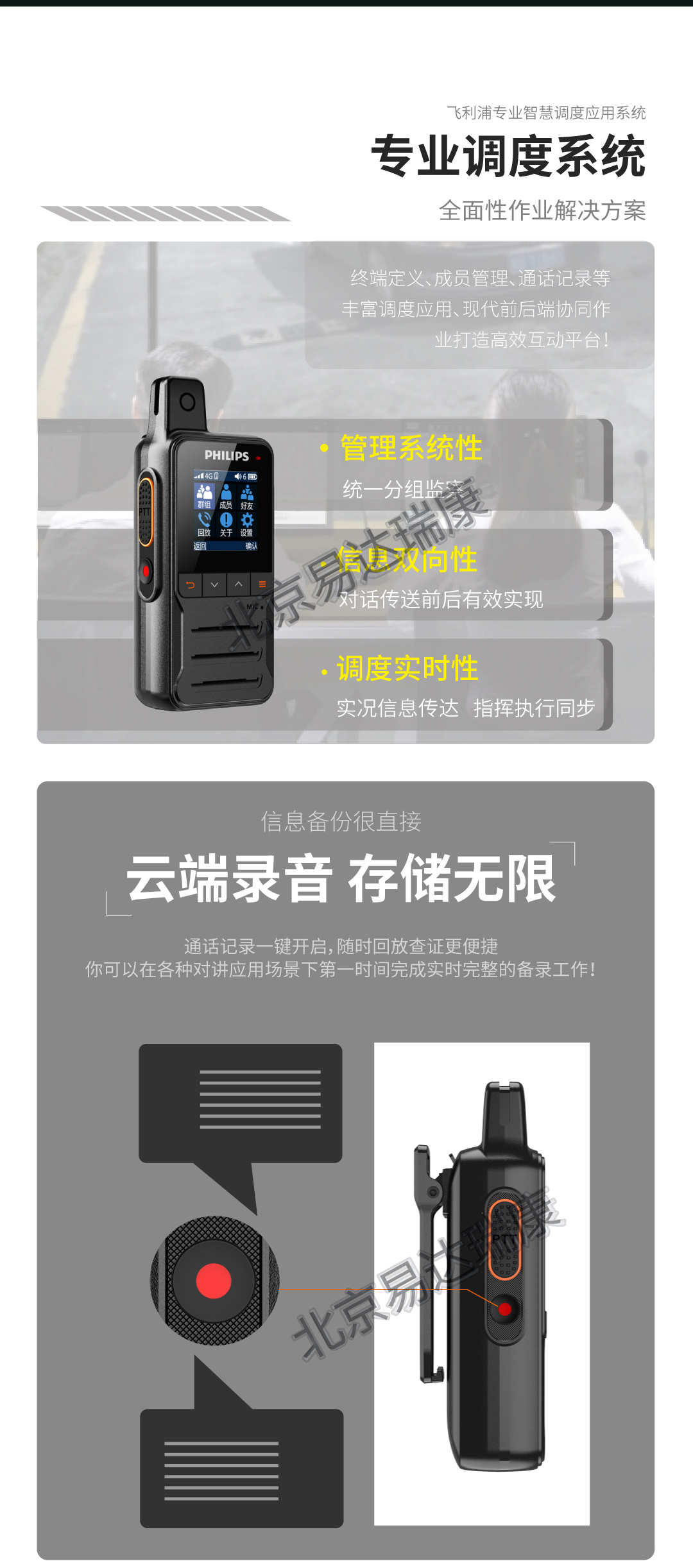 飛利浦公網(wǎng)智慧語音終端: 雙卡雙待/全國/公網(wǎng)對講/云端錄音/智慧平臺高效管理/快捷PTT呼叫/強勁續(xù)航/TYPE-C直充/可拆卸電池/ 續(xù)航無憂/智能降噪/對講