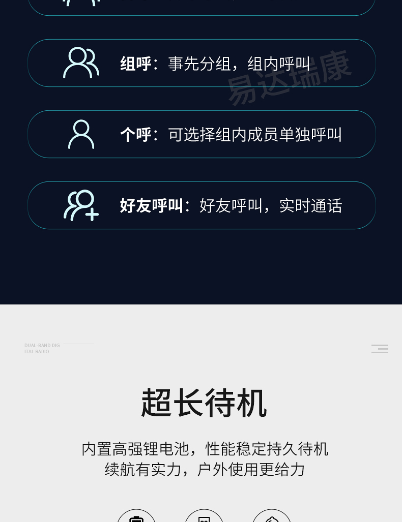雙卡雙待 3大運(yùn)營商使用 不限距離,全國對(duì)講 隨時(shí)錄音,云端存儲(chǔ) 大容量電池,強(qiáng)勁待機(jī)