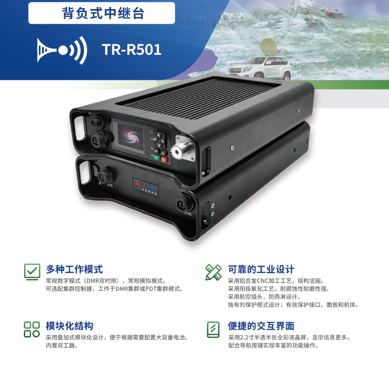 天津712背負(fù)中繼TR-R50VHF:TR-R501(1),UHF:TR-R501(4),350M:TR-R501(3)1中轉(zhuǎn)臺小巧設(shè)計模塊化結(jié)構(gòu)設(shè)計