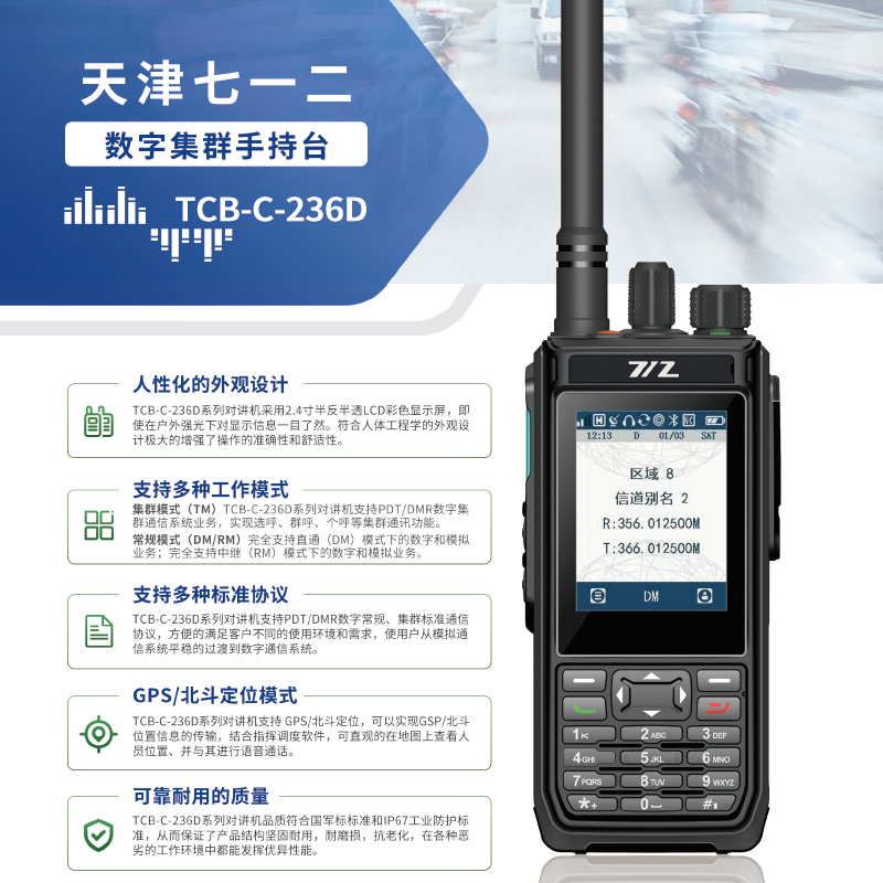 天津712數(shù)字集群手持臺TCB-C-236D內(nèi)置藍牙北斗GPS