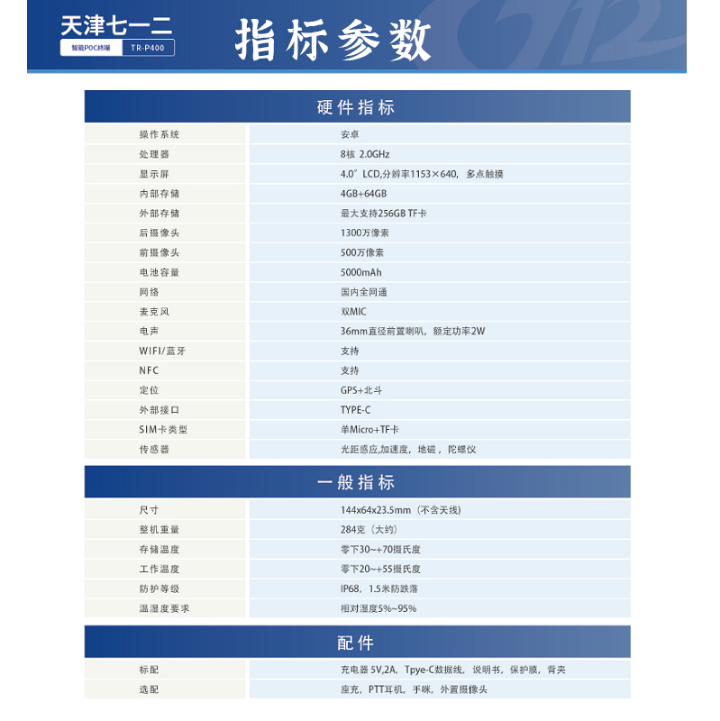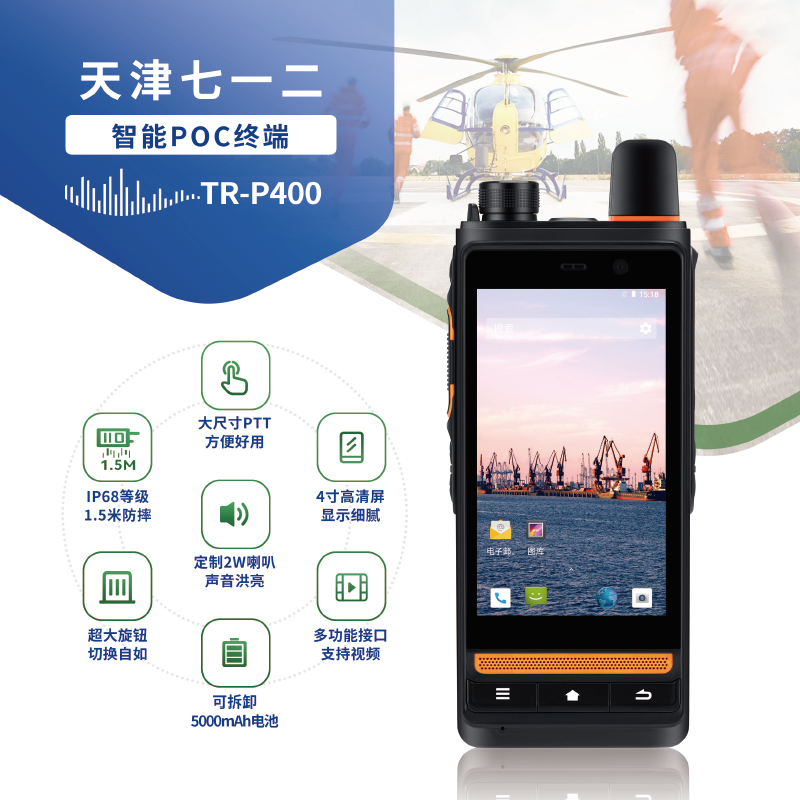 天津712智能POC終端TR-P400防護(hù)IP68全國(guó)對(duì)講機(jī)gps北斗