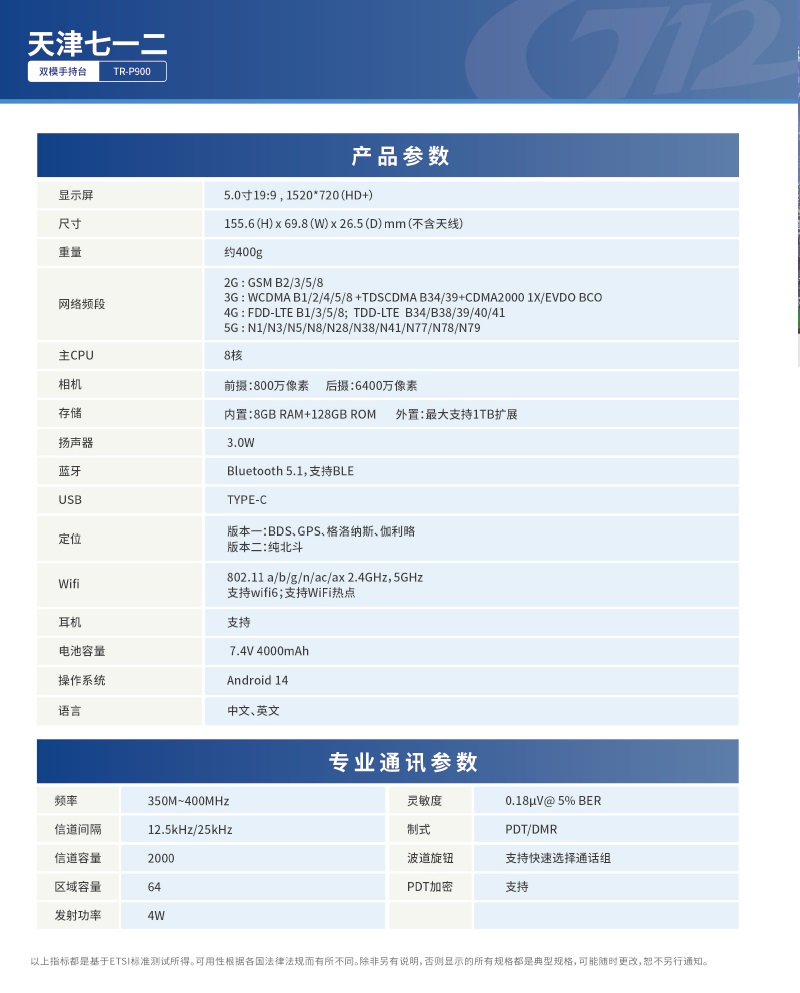 天津七一二雙模手持臺(tái)TR-P900