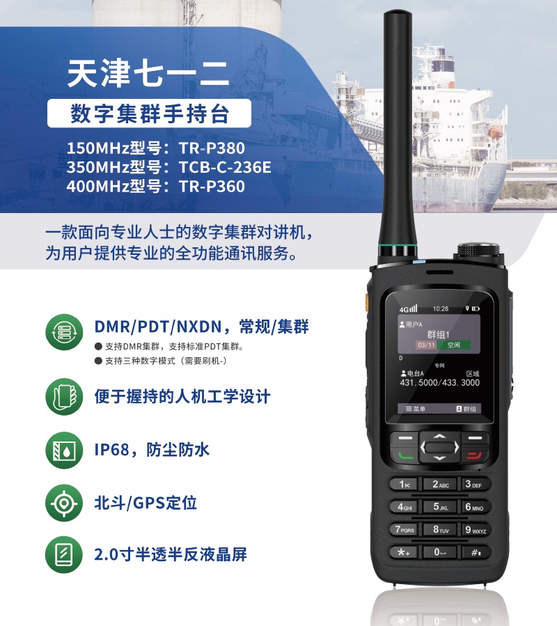 天津七一二集群手持臺VHF:TR-P380,UHF:TR-P360,350M:TCB-C-236E