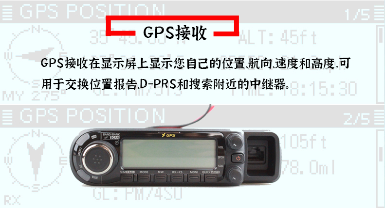 • 144MHz/430MHz雙段 可接收航空段頻率 內(nèi)置GPS