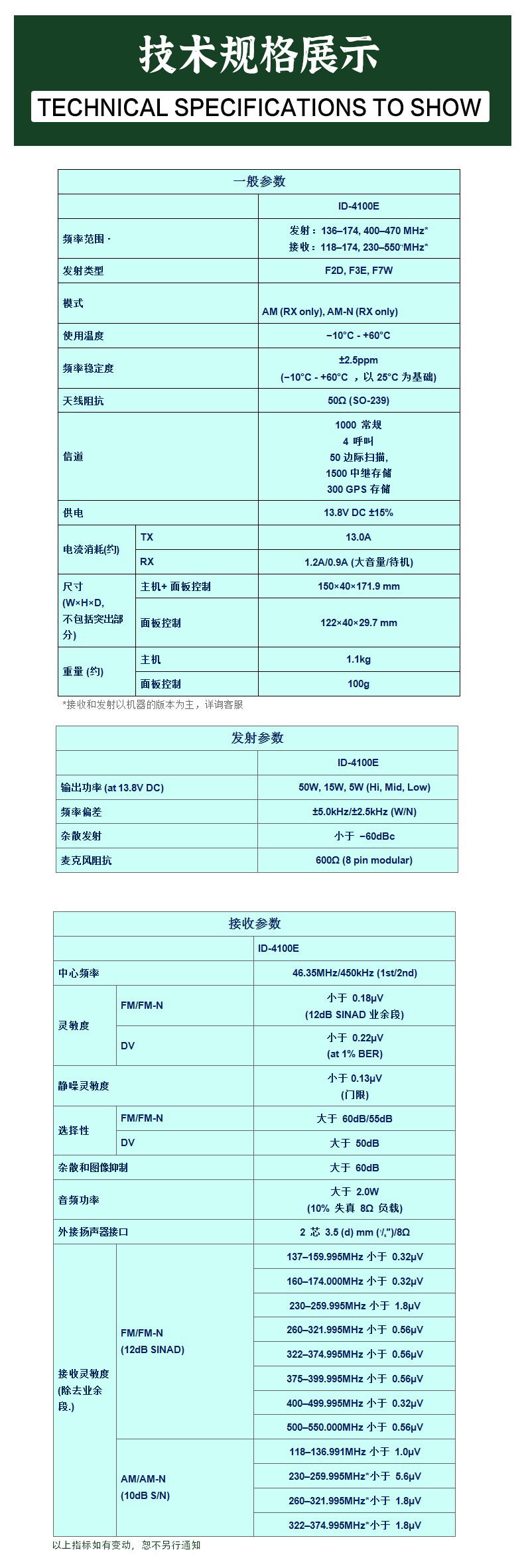 說(shuō)明:以上條款均以摩托羅拉公司,威泰克斯,艾可慕,健伍公司的有關(guān)規(guī)定為準(zhǔn)。