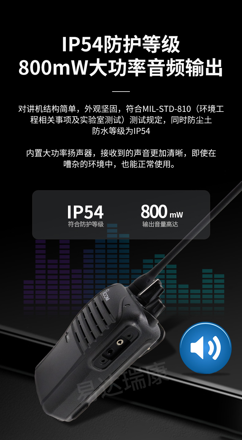 可支持數(shù)字模擬兩種模式,IP54防護等級,防塵防雨淋。800mW大功率揚聲器,即使在吵雜的環(huán)境中也能聽清話音。